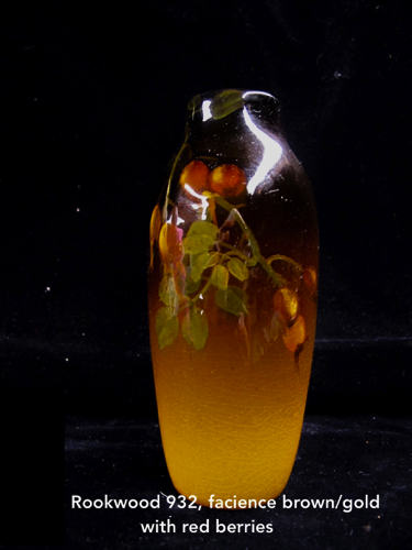 Felton, ERF, estimated 1899, rich red brown glaze with orange berries and leaves, beautiful design and color (poor photo)