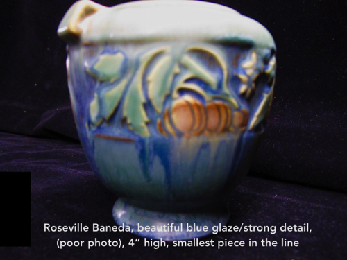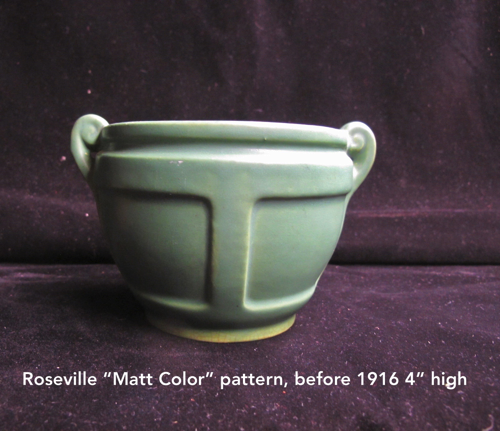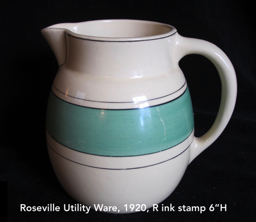 Roseville Pottery was incorporated in 1892 after purchasing the J.B. Owens factory which began operating in 1885. Early plants were both in Roseville and Zanesville, Ohio. Early production was utilitarian wares in both places. At no time did Roseville produce “artwork” in Roseville. The first art pottery line was made in Zanesville and was called Rozane. With John Herold’s arrival as art director and designer in 1900, the pottery began making a competing art line for each new product produced by the Weller Pottery Company.