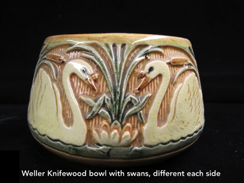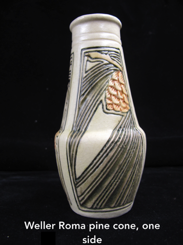 Weller Roma pine cone vase, different on each side, 6.50" high - introduced 1914, again by Rudolph Lorber