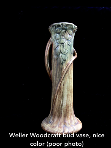 Woodcraft introduced by Weller in the 1920's-1933 and was a very popular line - bud vase is 8.50" high