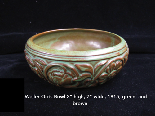 Orris line from 1915, beautiful green/tan glaze with very sharp definition in pattern, 3" high, by 7"wide, hard to find
