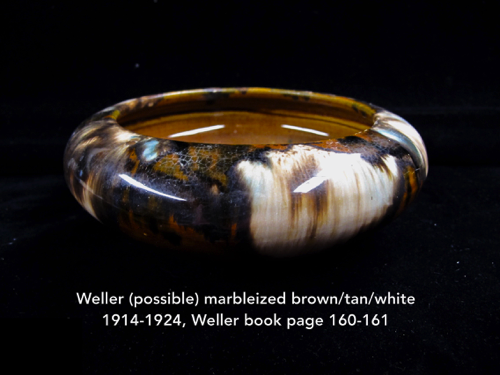 Drapery/Louella blue bowl, 1915, 3.50" high, possible Delores Harvey, also worked at Owens, believe used for flowers, glaze intact