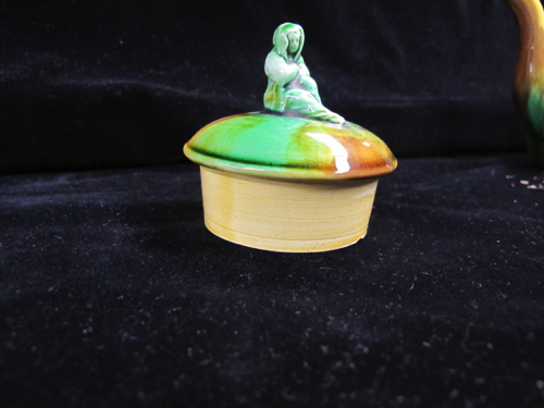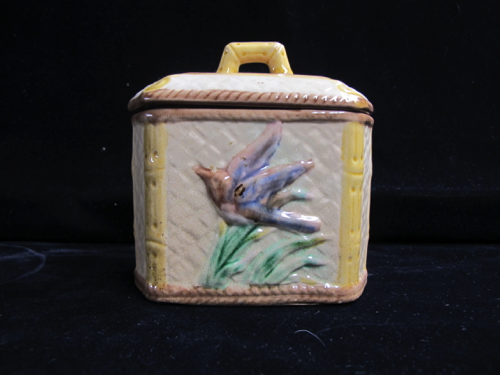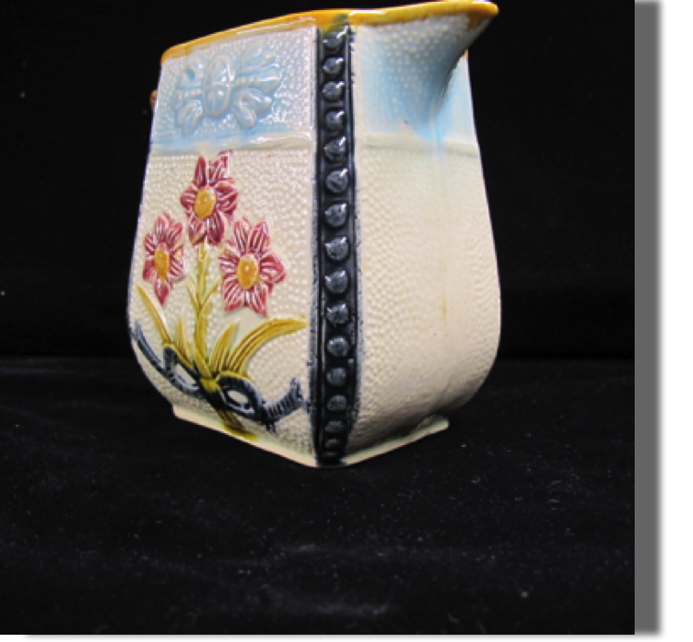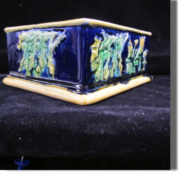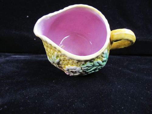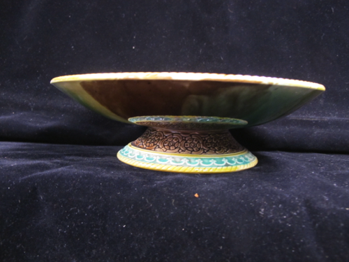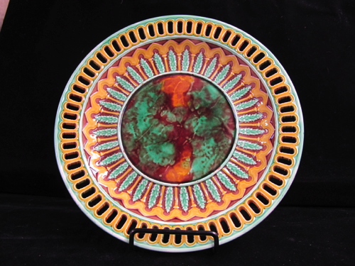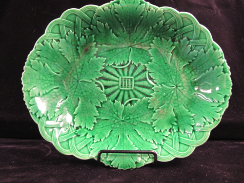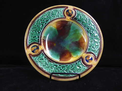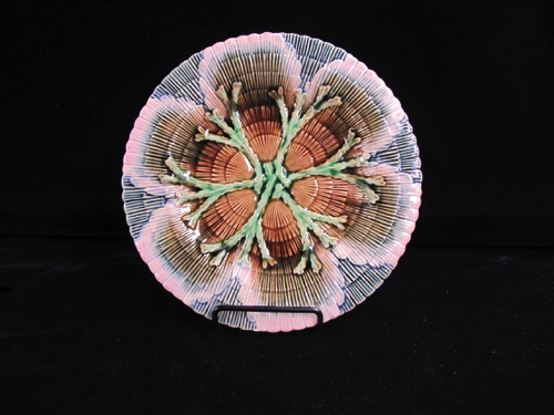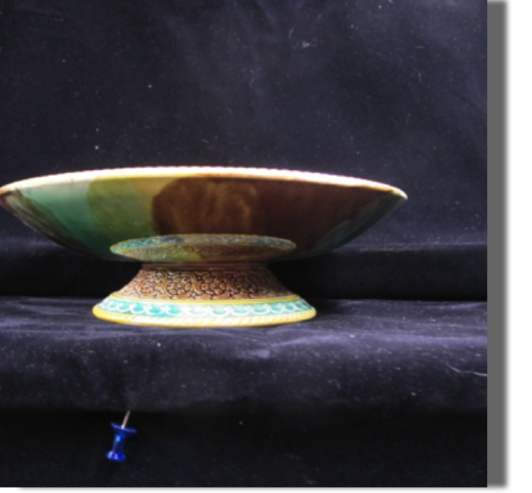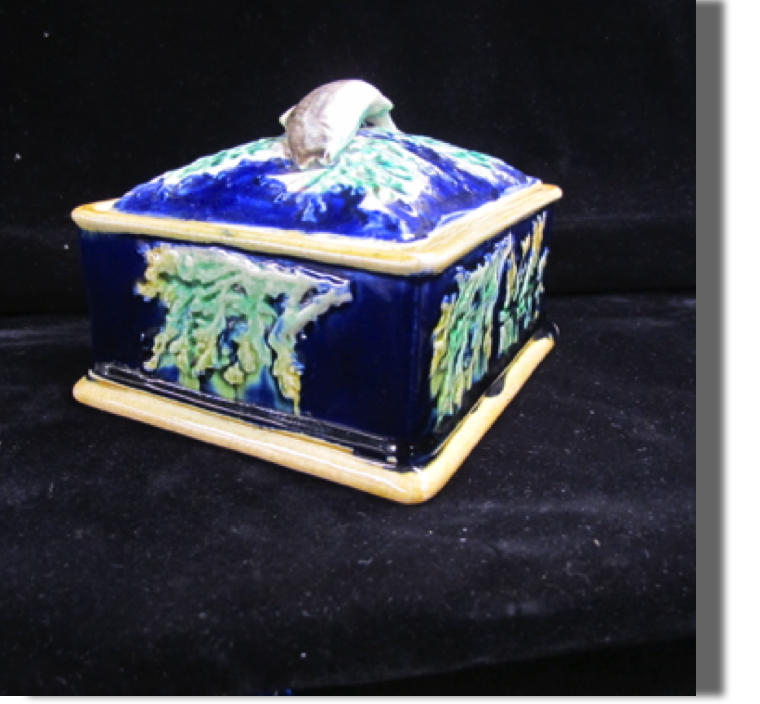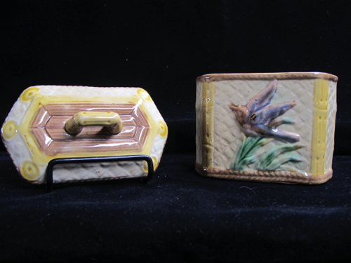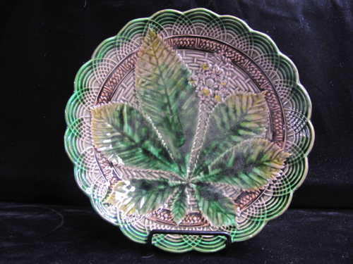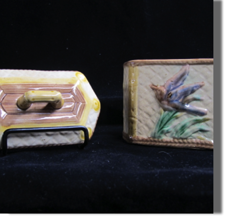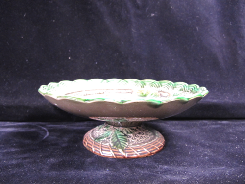 See brief history of majolica at end of page...offerings include objects both from England and America, let us know of an item you have an interest in and we will get to you measurements/price and any additional information you would like... all pieces are mint unless noted in description...our collection started with cake stands, and there are several fine examples in our offerings...