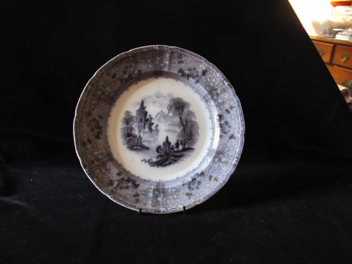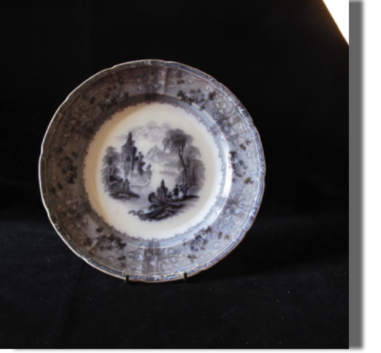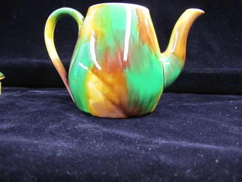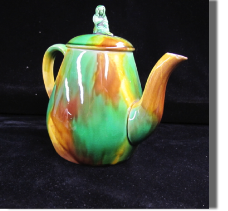 Believe English, possibly Wedgwood, and described as a 'widow mourning' very small chip on lip of spout (old)